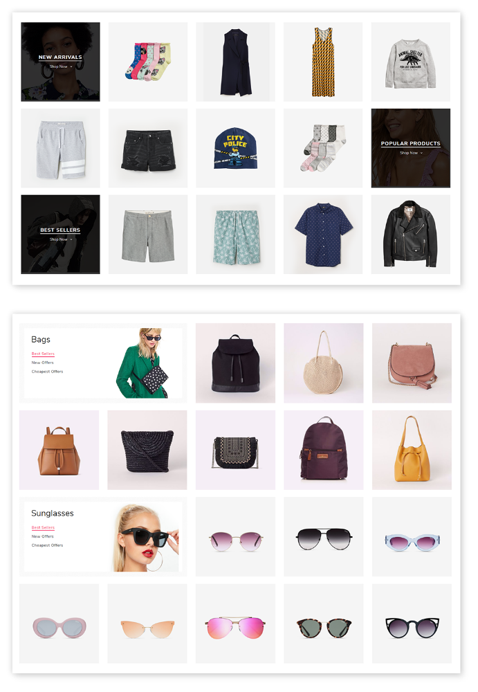 Nop Akıllı Ürün Koleksiyonları ile ürünlerinizi koleksiyonlar halinde düzenleyebilir ve web sitenizin sayfalarında sergileyebilirsiniz. Her grubun bilgileri, web sitesi sunucunuzun yanıtını şişirmeden Ajax kullanılarak dinamik olarak yüklenir.