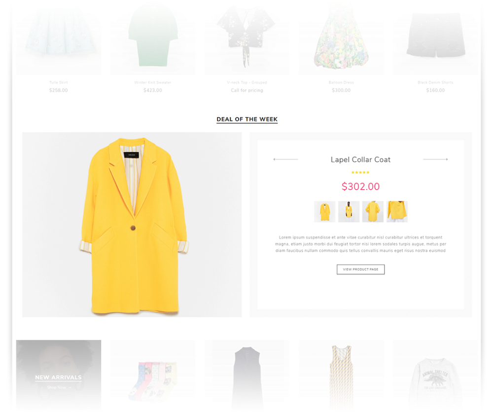 Resim galerisi olan bir ürün sayfası ile standart resim karuseli olan bir ürün sayfası arasında seçim yapabilirsiniz.