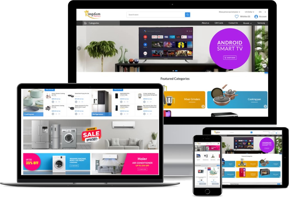 nopStation'ın Kingdom teması, herhangi bir mega mağaza için nihai nopCommerce temasıdır. NopCommerce için sınıfının lideri olan bu çok mağazalı tema, çevrimiçi nopCommerce mega mağazanızı kurmak ve işletmek için ihtiyacınız olan her temel özelliğin yanı sıra birden fazla düzen ve tarayıcı desteği sunar. En son web teknolojileri ve tasarım ilkeleri kullanılarak geliştirilen bu tema, mağazanıza inanılmaz işlevsellik ve ışık hızında performans kazandırır.