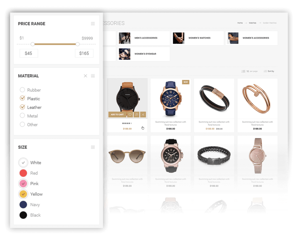 Nop Ajax Filtreleri ile müşteriler ürünleri fiyata, üreticiye, teknik özelliklere ve hatta niteliklere göre filtreleyecek. Eklenti, nopCommerce mağazanızın kategori, üretici ve satıcı sayfalarıyla bütünleşir