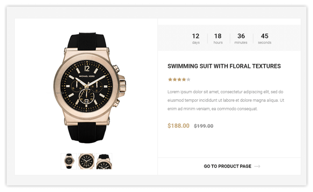 İki seçenek mevcuttur: resim galerisi içeren bir ürün sayfası ve resim karuseli içeren standart bir ürün sayfası.
