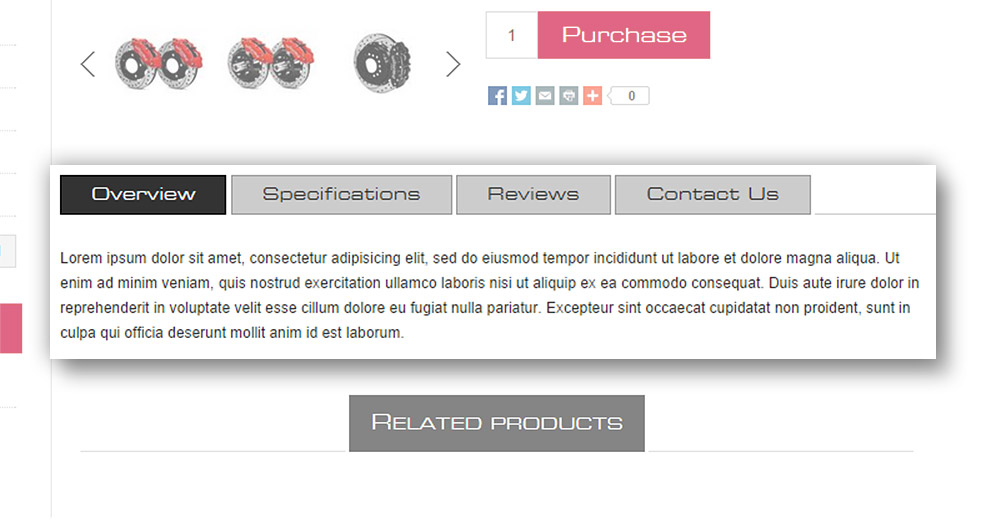 Nop Hızlı Sekmeler eklentisi, nopCommerce mağazanızın ürün sayfalarına bilgi sekmeleri ekler. Sekmeleri, duruma göre ayrı ayrı ürünlerle eşleyebilirsiniz (yani, ürün bu kategoridedir ve bu üreticiye aittir). Bu son derece yapılandırılabilir uzantıyla, ürün bilgilerinizin müşterilerin ve arama motorlarının erişimine sunulmasını sağlayabilirsiniz.